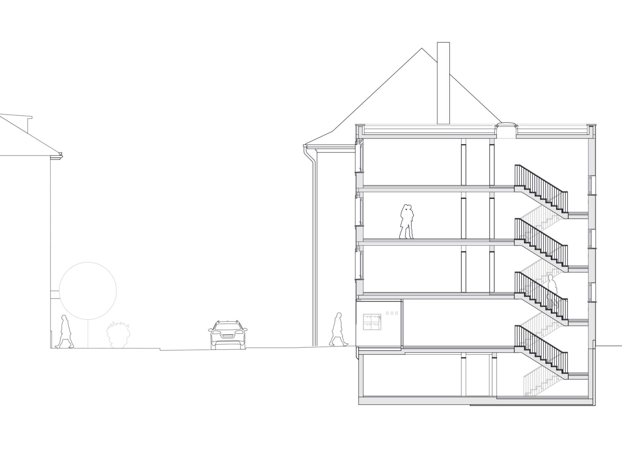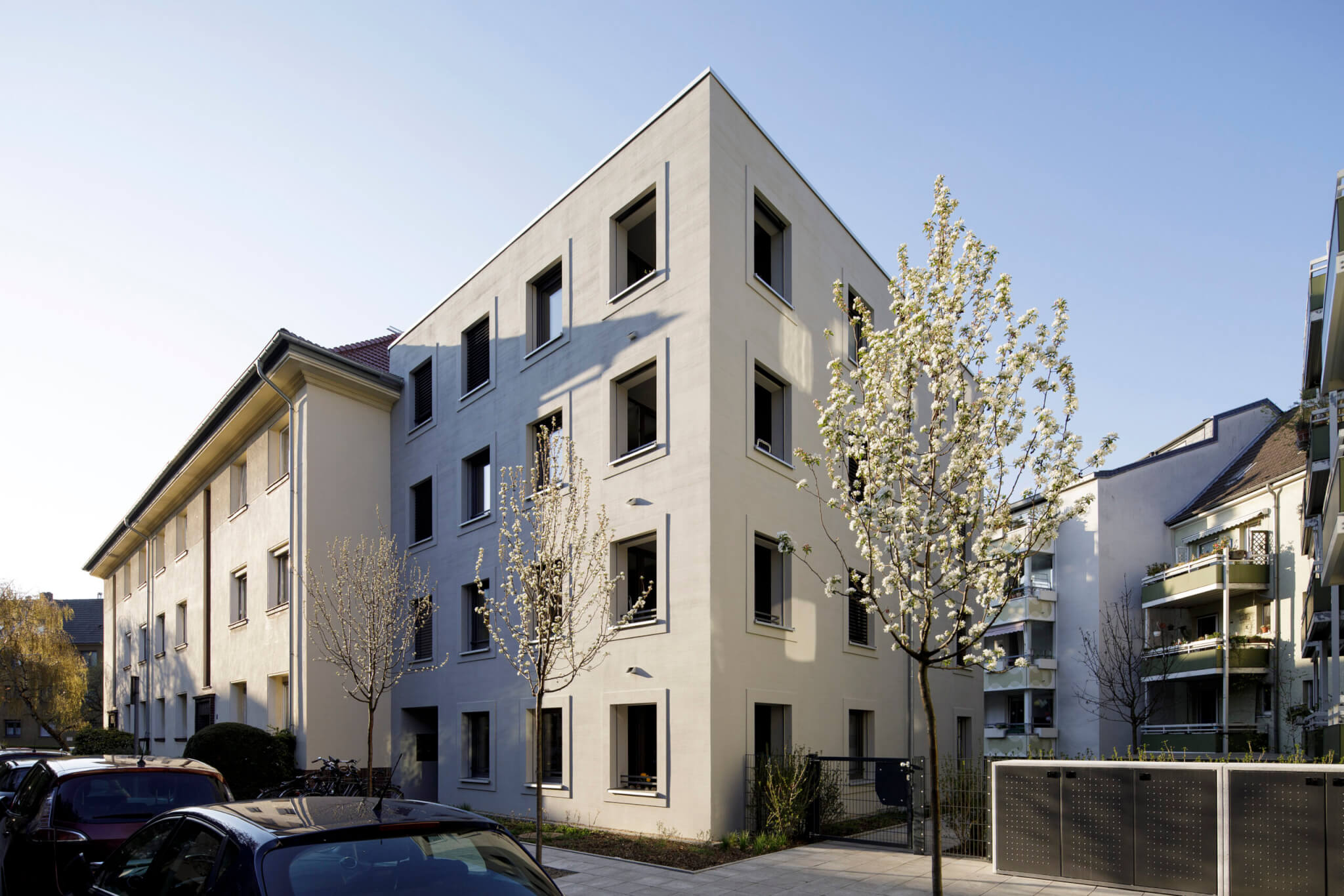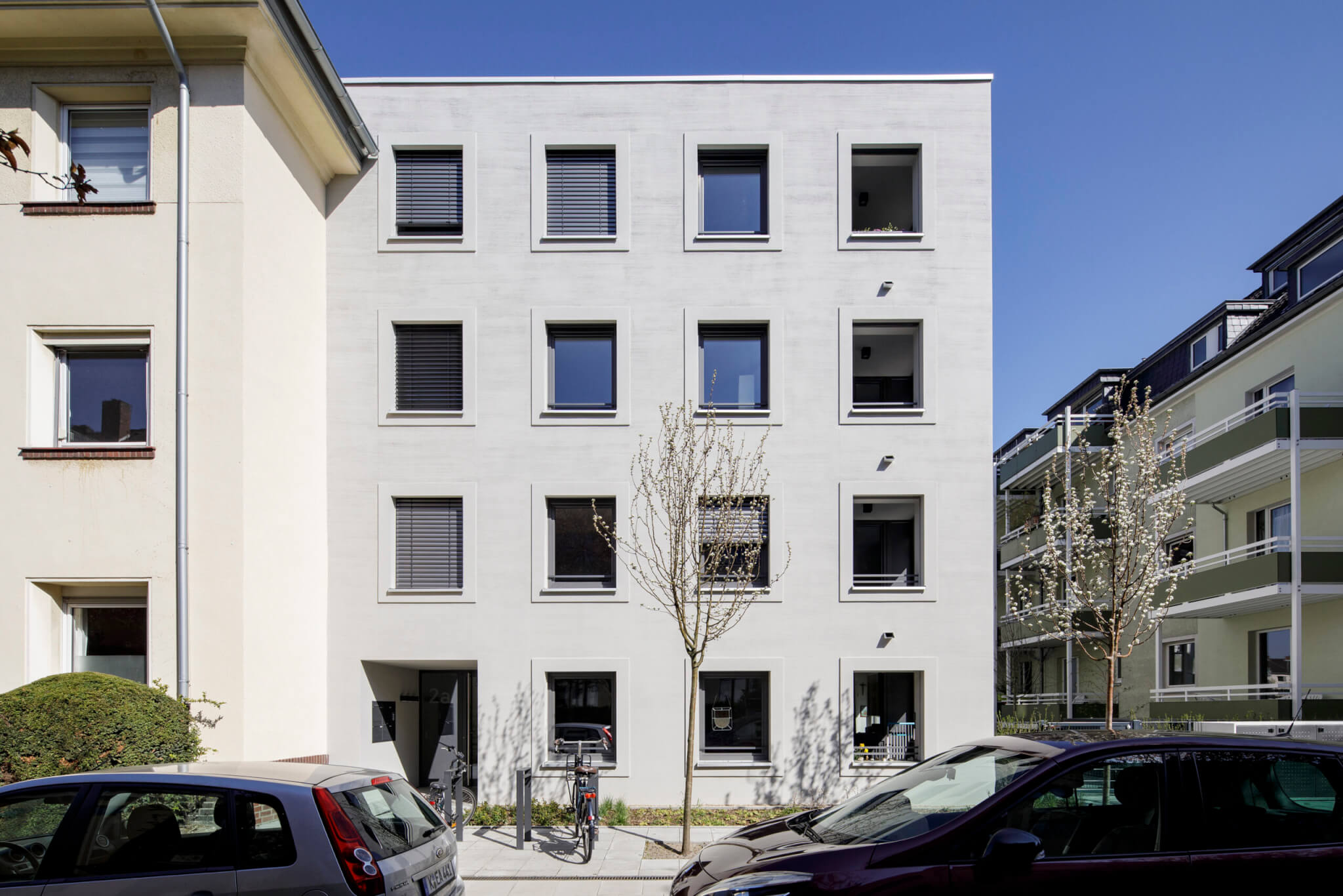 Der Wohnungsbau setzt sich mit der innerstädtischen Nachverdichtung in einer denkmalgeschützten Umgebung auseinander. Ein viergeschossiges Wohnhaus mit vier Wohneinheiten im Stadtteil Köln-Neuehrenfeld ersetzt einen eingeschossigen Gewerbebau der Blockrandbebauung. Durch den Neubau wird der zuvor geschlossene Blockrand aufgebrochen und das Blockinnere erhält eine neue Zugänglichkeit für alle Bewohner.